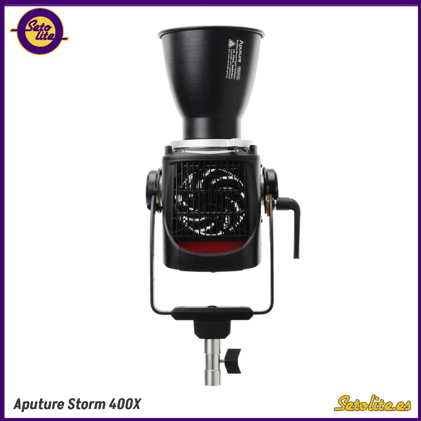 El Aputure STORM 400x es un foco profesional de 400W, diseñado para ofrecer una iluminación versátil y de altísima calidad. Incorpora el innovador motor de luz BLAIR (Blue/Lime/Amber/Indigo/Red), capaz de generar luz blanca regulable entre 2500° y 10.000° CCT, con control de tinte verde completo (+/-) para una calibración cromática precisa.